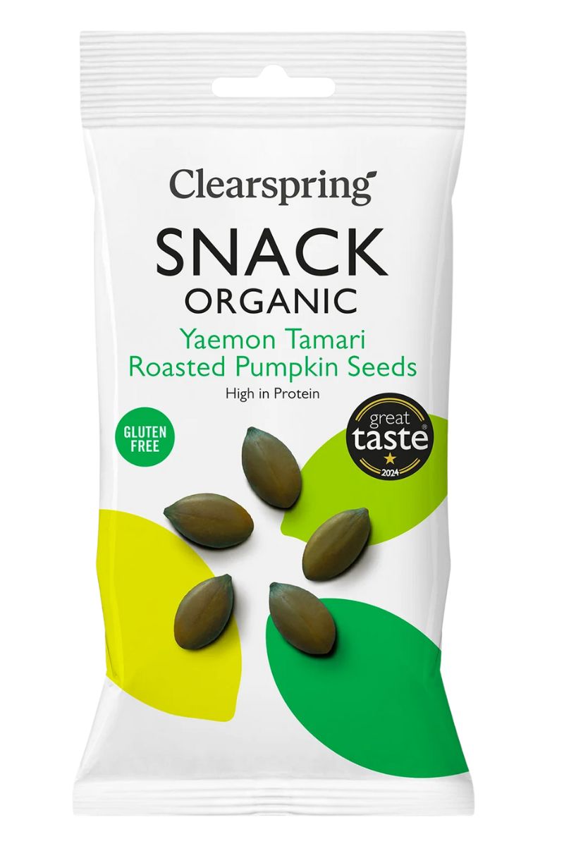Clearspring Snack Organic Tamari Roasted Styrian Pumpkin Seeds make the perfect snack, or topping for salads, cereals and noodle dishes.