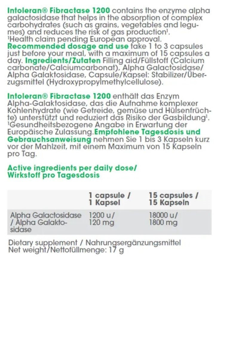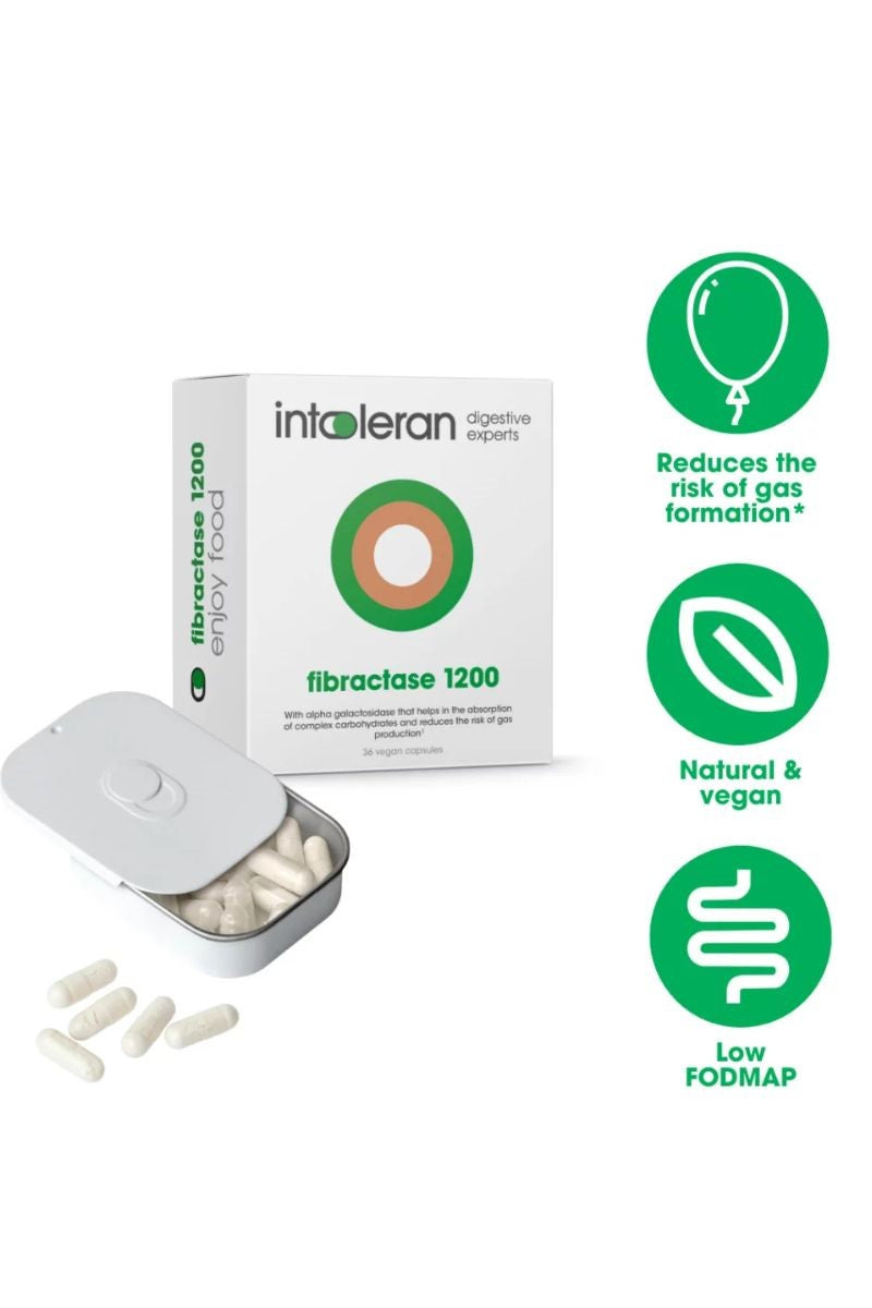Intoleran Fibractase contains the digestive enzyme Alpha Galactosidase, which helps with the digestion of the hard-to-digest carbohydrates included in the FODMAP groups fructans and galactans.
