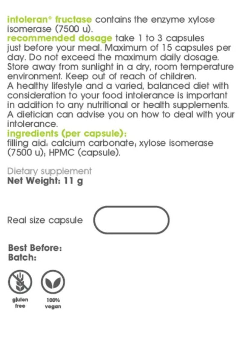 Intoleran Fructase is ideal for someone with fructose intolerance or fructose malabsorption. It contains the digestive enzyme Xylose Isomerase, which helps with the digestion of the FODMAP fructose.